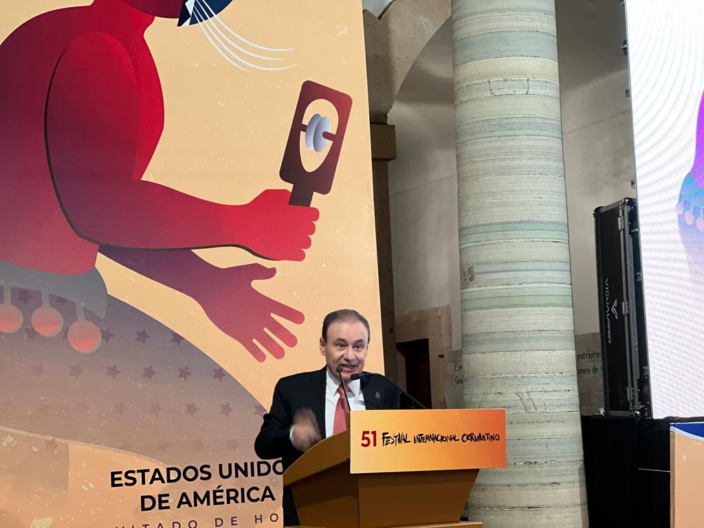 En su mensaje, el gobernador de Sonora, Alfonso Durazo, agradeció a los organizadores del festival por voltear a ver a su estado para ser parte de esta edición 51 del Cervantino, pues expresó que cuentan con una amplia cultura que los capitalinos guanajuatenses conocerán, así como todos los visitantes que lleguen a disfrutar de la fiesta del espíritu.