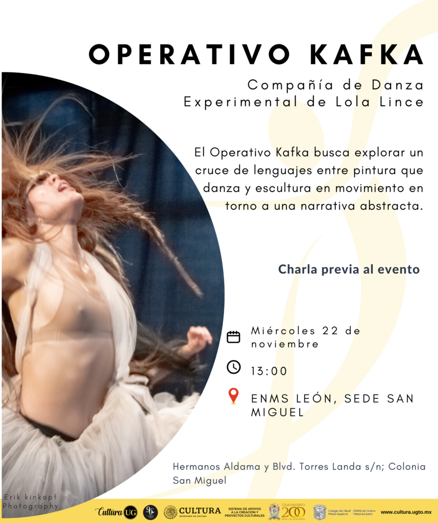 Paralelamente, quienes deseen aprender alemán, francés, italiano, inglés y japonés, el Curso de Idiomas para el periodo febrero-junio del 2024, consultar la página www.ugto.mx/campusleon/idiomas. A su vez, en la Escuela de Nivel Medio Superior de Sede San Miguel, la Compañía de Danza Experimental de Lola Lince presentará “Operativo Kafka” este 22 de noviembre en punto de las 13:00 horas.