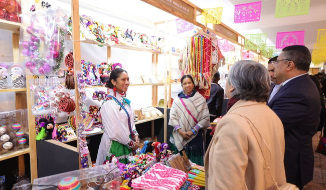 También, señaló que el Fonart, desde el arte popular, realiza acciones para coadyuvar con los proyectos prioritarios del Gobierno de México como la participación de artesanas originarias de El Nayar, Nayarit, en el marco del Plan de Justicia para el pueblo wixárika y, en solidaridad ante la emergencia en el estado de Guerrero, se invitó a participar a nueve talleres artesanales de ocho municipios con piezas representativas del estado como hamacas de Copalillo, cajitas de Olinalá, platería de Taxco, sombreros de Tlapehuala, juguetes y bules de Temalacatzingo, piezas tejidas de palma de Chilapa de Alvarez, entre otras.