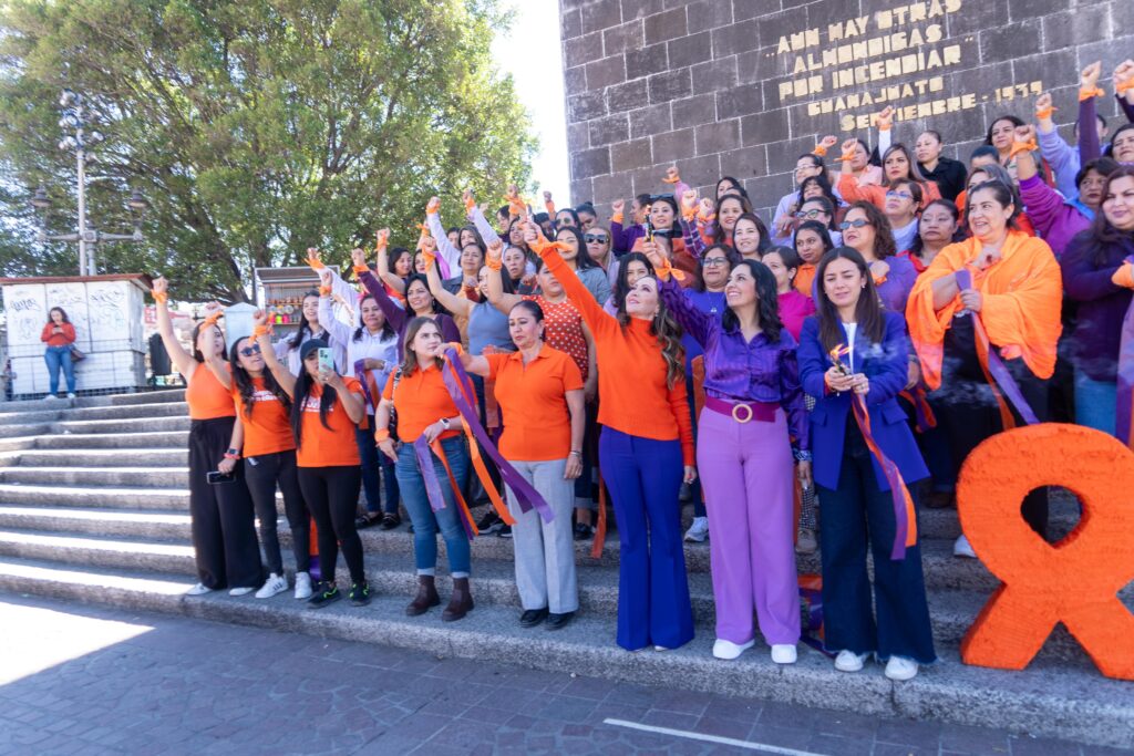 “Aquí estamos las mujeres, levantando la voz fuerte y claro para ponerle un alto a la violencia”, manifestó la presidenta del DIF Municipal, Samantha Smith, quien acompañó en el activismo a funcionarias del Gobierno capitalino e integrantes del Ayuntamiento de Guanajuato.