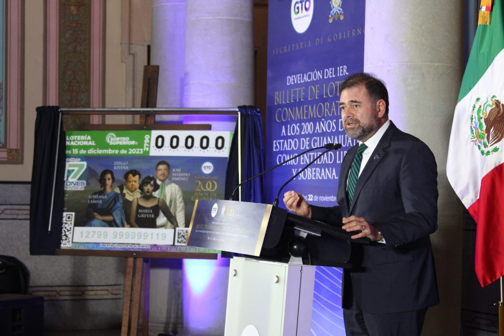 De acuerdo al comunicado de prensa, el secretario señaló: “Uno de los compromisos asumidos por la Comisión de Celebraciones por los 200 Años de Guanajuato como Entidad Federativa, Libre y Soberana, es la emisión de los billetes conmemorativos de la Lotería Nacional, cuyo objetivo principal es destacar la Grandeza de Guanajuato, la grandeza de sus hombres y mujeres que forman parte de esta historia que enaltece al estado”.