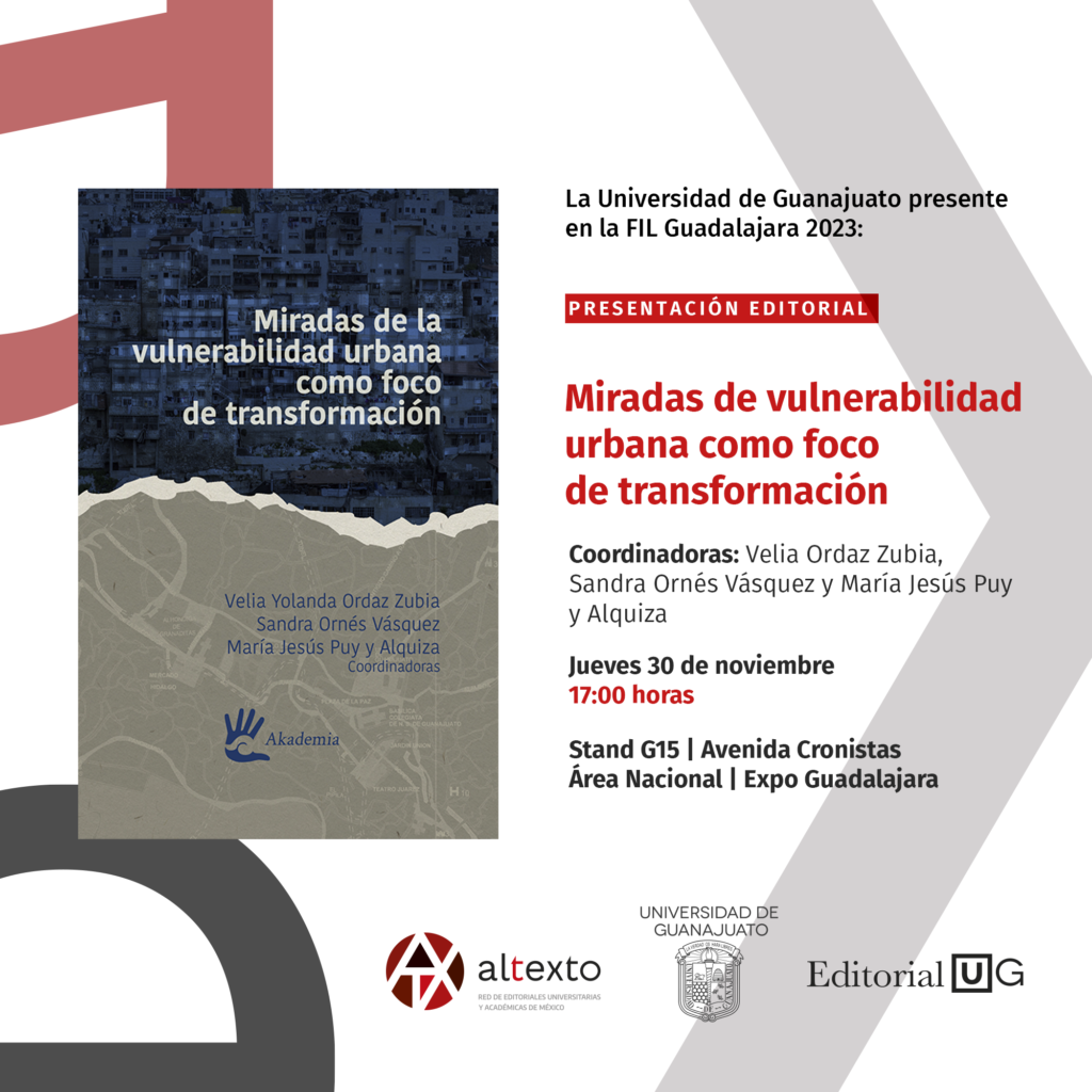 Guanajuato, Gto.-La Universidad de Guanajuato (UG) estará presente del 25 de noviembre al 3 de diciembre en la Feria Internacional del Libro de Guadalajara 2023 (FIL 2023) con la exposición y venta de publicaciones en el stand colectivo de la Red Altexto de Editoriales Universitarias y Académicas de México.