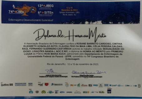 Luego de cuatro días de intensa actividad académica donde se desarrollaron en forma paralela la 13ª Jornada Brasileña de Enfermería Gerontológica y el 6º Seminario Internacional sobre el Trabajo de Enfermería, la Comisión Juzgadora del Premio decidió que el trabajo presentado por las y los investigadores merecia el premio al primer lugar, patrocinado por el Departamento de Enfermería de la Universidad Federal de Paraná.