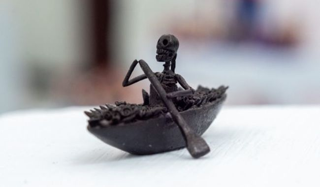 Una de las piezas ganadoras de este certamen es Categoría V. Cerámica en miniatura, a María del Rocío Espinoza Ruiz, por su obra Mujer trajinera