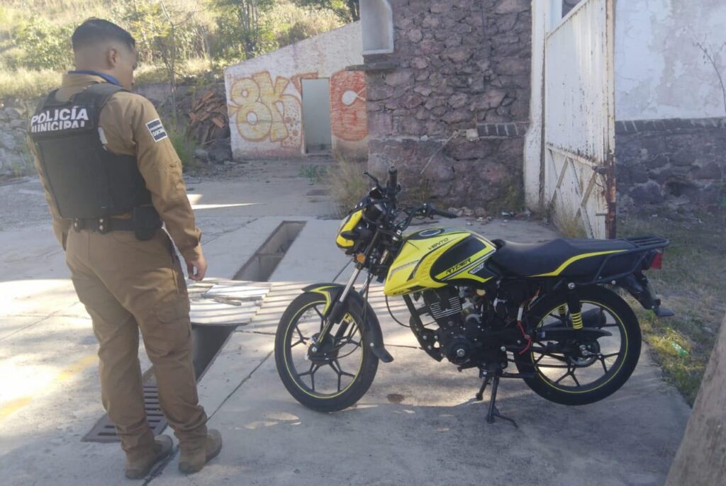 Posteriormente y derivado de los patrullajes preventivos sobre la carretera panorámica y el Cerro del Gallo, la Policía Municipal encontró una motocicleta Vento con reporte de robo dentro de un inmueble que tenía el portón frontal dañado. El velador refirió que encontró el candado roto y dentro ya estaba la motocicleta, de color amarillo con franjas negras, sin batería y aparentemente averiada.
