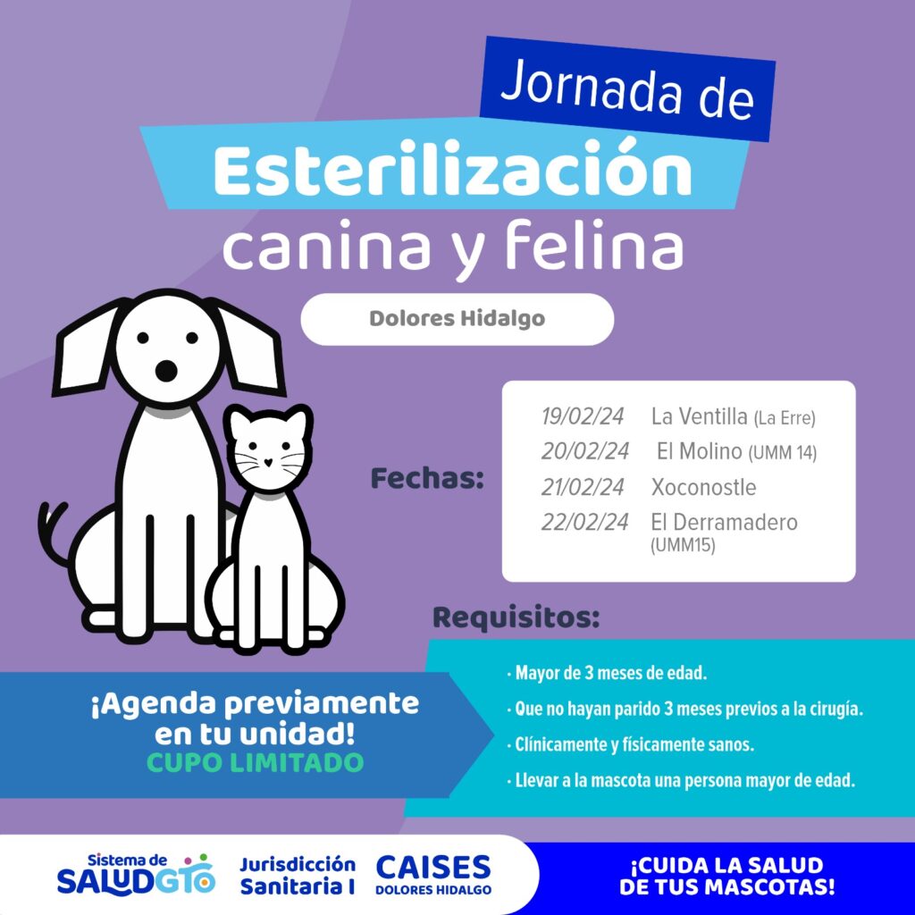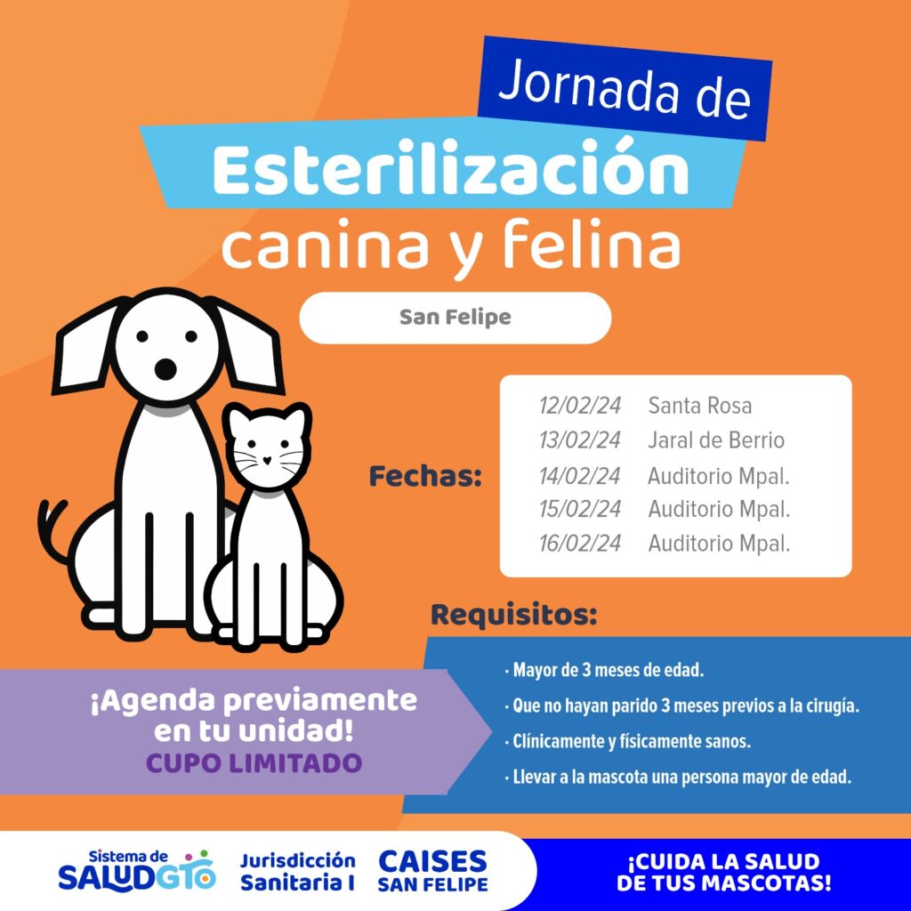 La coordinación de Epidemiología busca realizar 570 esterilizaciones aproximadamente de forma totalmente gratuita en diversas sedes de los municipios de Dolores Hidalgo, Guanajuato, San Diego de la Unión y San Felipe, iniciando el 2 de febrero en la UMAPS Santa Bárbara de Ocampo.