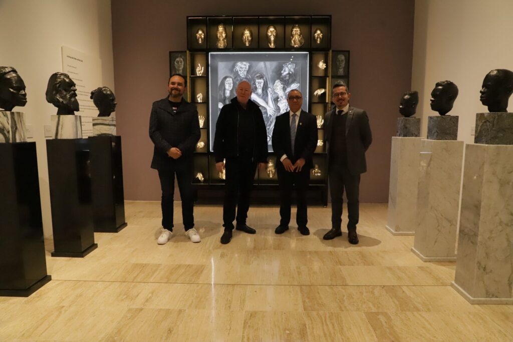 El recorrido comenzó por la exposición “Desde la esfera del vacío”, de Johan Falkman, instalada en la galería Hermenegildo Bustos, donde el artista describió como corazón de la exposición, una pieza que emula un tablero de ajedrez con personajes históricos, bíblicos y que incluye una figura de Moctezuma y un jefe de tribu Zulú. “De la esfera de la vida se levantan todos: madres, padres hijos, brujas, amantes”, indicó el artista sueco.