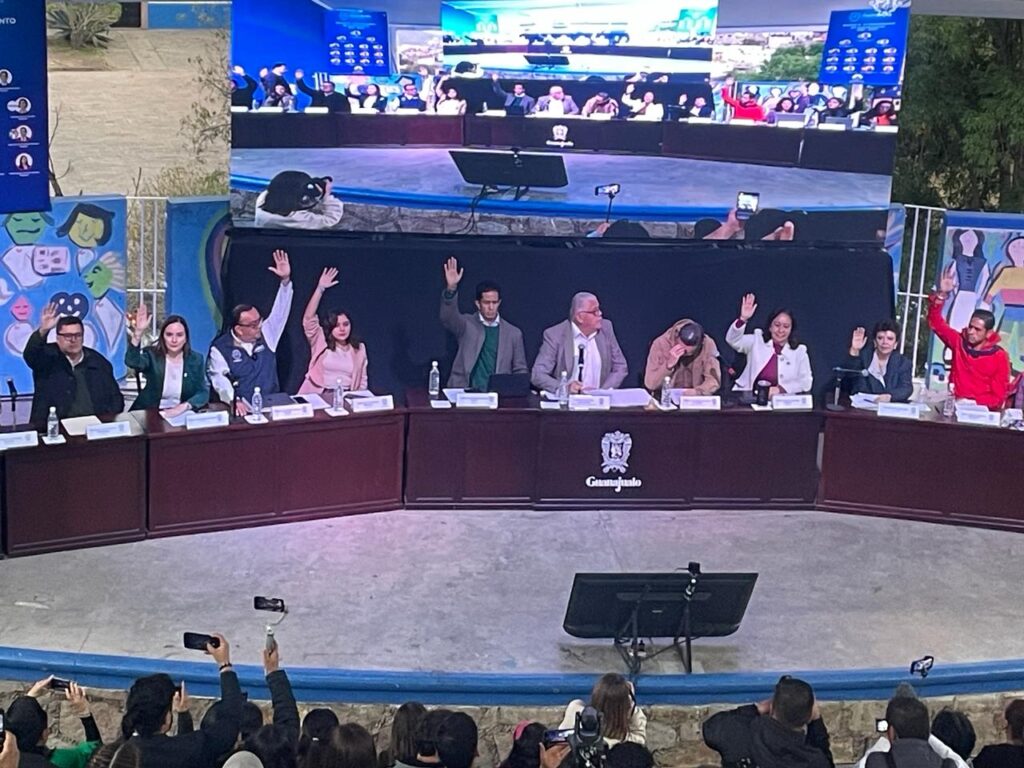 Guanajuato, Gto. En sesión de Ayuntamiento fue aprobada por votación unánime la regularización de terrenos de los polígonos que comprenden la ex Estación del Ferrocarril, Ladera del Cerro de la Bolita, Pueblito de Rocha y Arroyo del Pirul, que beneficiará a más de 500 familias en la primera etapa.