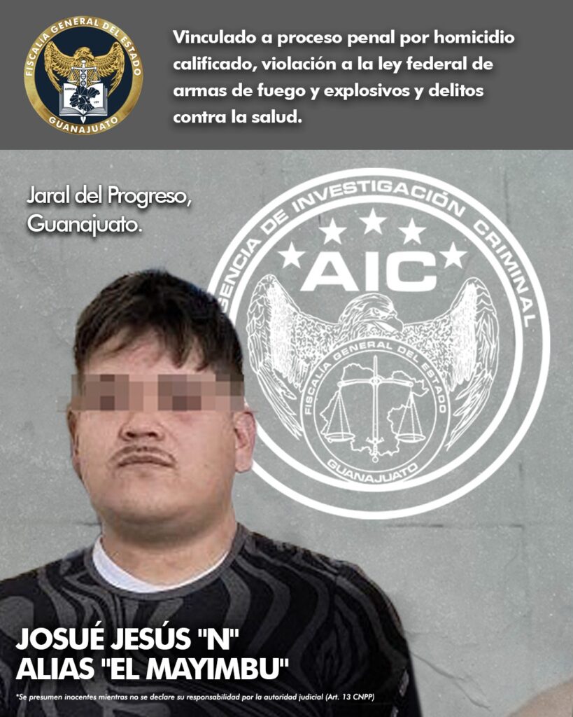 Jaral del Progreso, Gto. La Fiscalía de Guanajuato realizó un operativo en la colonia Presidencial en el municipio de Jaral del Progreso, donde fue capturado JOSUÉ JESÚS “N”, alias “El Mayimbu”, presunto integrante de grupo criminal, acusado de asesinar a dos personas en dicho municipio.