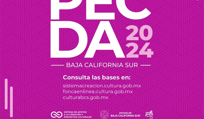 CDMX.- La Secretaría de Cultura federal, a través del Sistema Creación (antes Fonca), y el gobierno de Baja California Sur, mediante el Instituto Sudcaliforniano de Cultura (ISC), publican la convocatoria del Programa de Estímulos a la Creación y Desarrollo Artístico (Pecda) 2024.