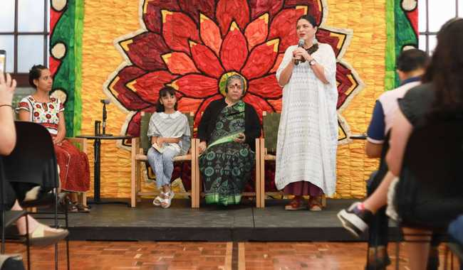 Para cerrar la jornada, el auditorio pudo escuchar la narración de Vandana Shiva sobre cómo el imperialismo busca imponer su modelo codicioso de cultivos, dañando la salud, el medioambiente y a la población, en un nuevo modelo de colonización que despoja a las comunidades de sus derechos sobre sus artes, sus cultivos, sus tradiciones.