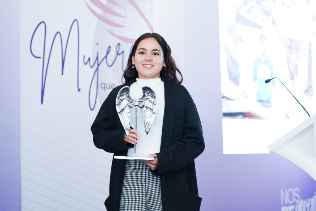 León, Gto.- Con el galardón “Mujeres que Inspiran” la Asociación Mexicana de Mujeres Empresarias (AMEXME) Capítulo León, reconoció a Jessica Noemí Cuellar Concha, estudiante de Ciencias de la Actividad Física y Salud de la Universidad de Guanajuato (UG) en la categoría “Mujer futuro de México”, como parte de la conmemoración por el Día Internacional de las Mujeres.