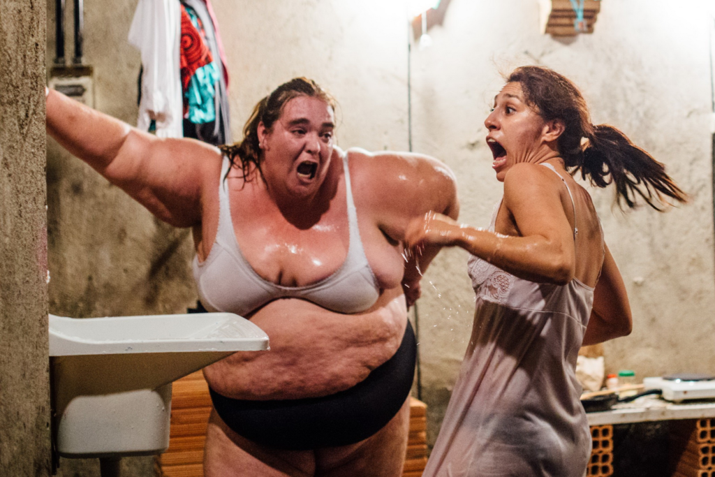 La peculiaridad de esta propuesta se encuentra en que tanto espectadores como actrices sufren el encierro emocional en el mismo espacio, compartiendo una misma respiración incómoda pero necesaria.
