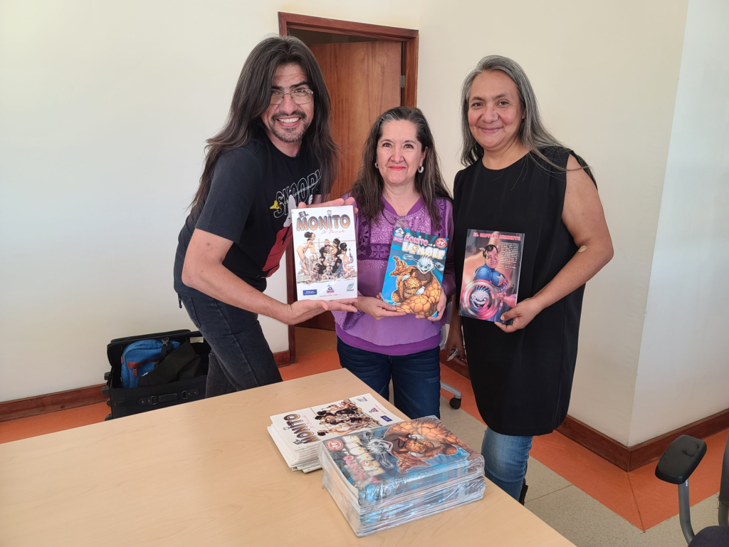 Desde la Ciudad de México, Luz María Armenta entregó en donación más de 250 ejemplares de dos de los volúmenes de cómic firmados por su hermano: “El Monito va a la Mole” y “El Monito al desnudo”, que ahora formarán parte del acervo de la comicteca de la Biblioteca Central Estatal Wigberto Jiménez Moreno y de la red estatal de bibliotecas públicas.
