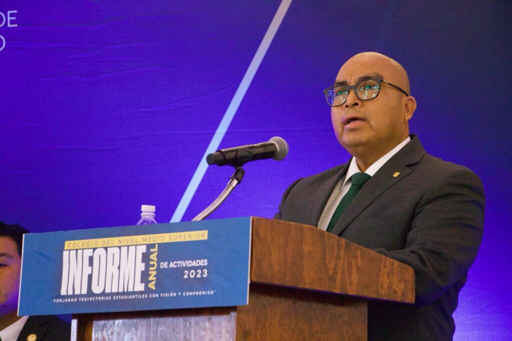 En su intervención el Dr. J. Merced Rizo Carmona, mencionó los logros y resultados obtenidos, se deben al esfuerzo de toda la comunidad del Nivel Medio Superior.