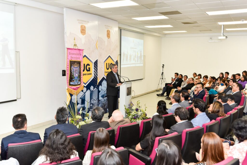 León, Gto.- El Campus León de la Universidad de Guanajuato (UG) presentó ante el H. Consejo Universitario de Campus, comunidad universitaria y representantes de diversas instituciones públicas y privadas, su Informe Anual de Actividades 2023, a cargo de su rector el Dr. Carlos Hidalgo Valadez.