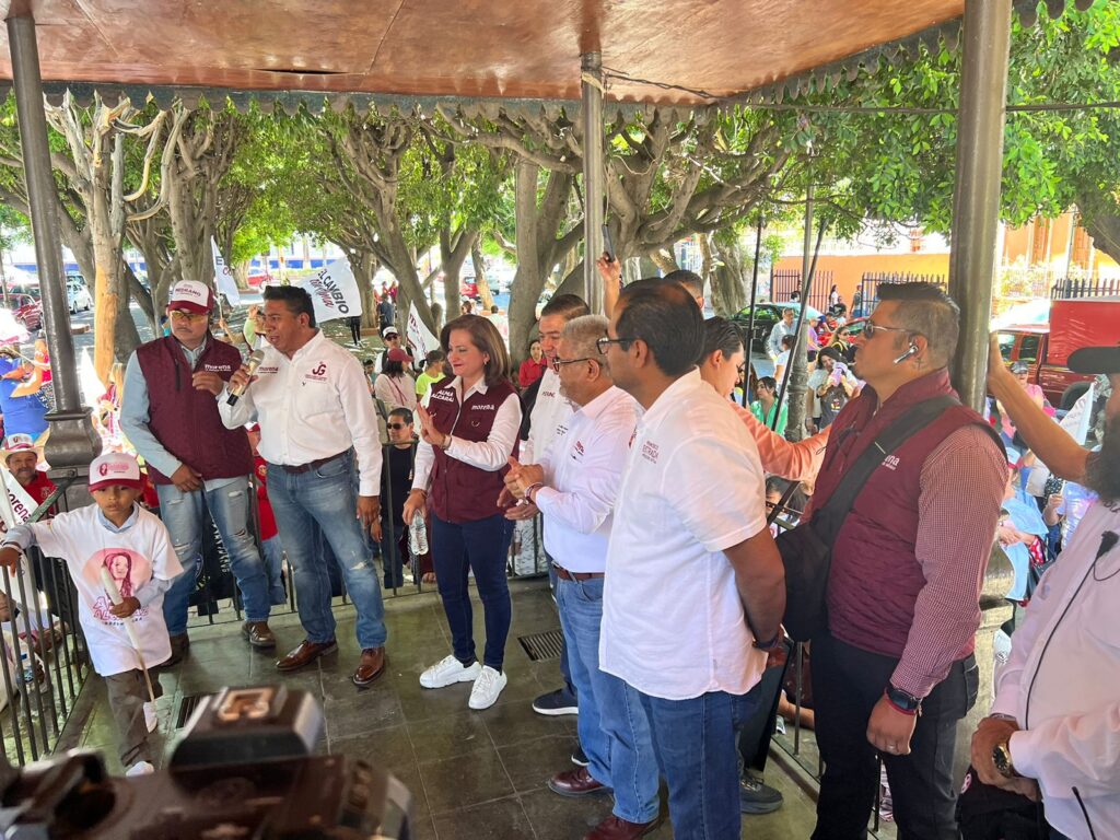 Alma Alcaraz, se tomó fotos y bailó con los demás candidatos arriba del kiosco, y tras 40 minutos de selfies y saludos, se retiró del lugar sin saludar a militantes ni simpatizantes, además de no brindar atención a medios de comunicación, pues hubo una barricada de elementos de seguridad que impidieron la entrevista.