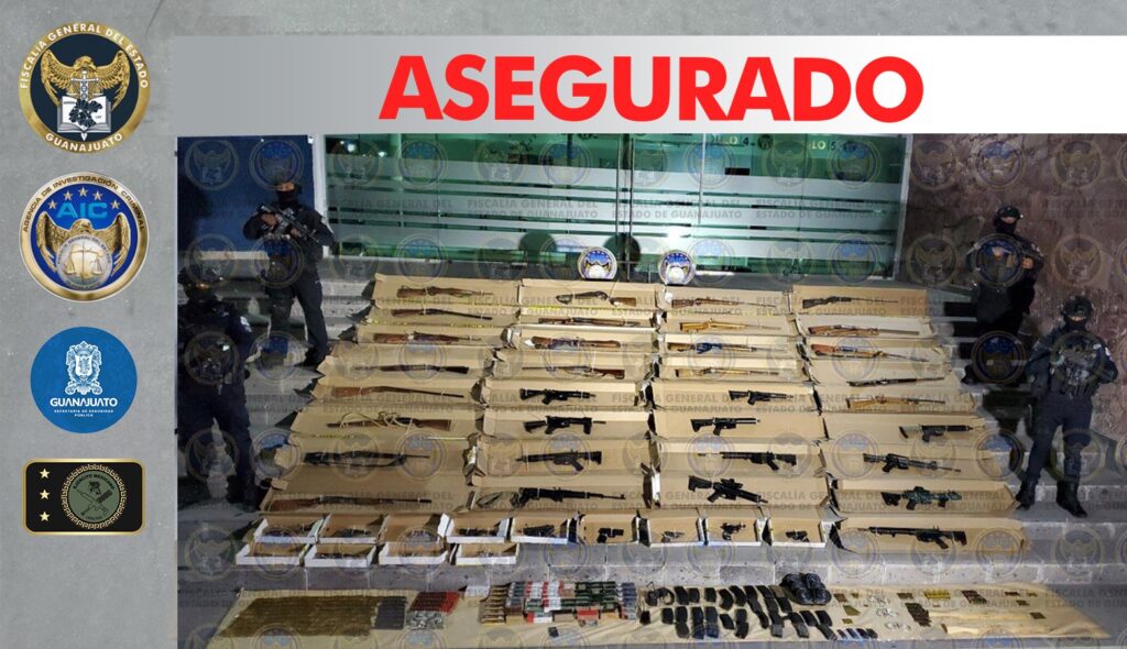 San Felipe, Gto. La Fiscalía de Guanajuato en coordinación con la Secretaría de Seguridad Pública del Estado y la SEDENA desplegó operativos ministeriales en el municipio de San Felipe y aseguró un arsenal, equipo táctico, droga, dinero en efectivo, entre otros objetos del delito.
