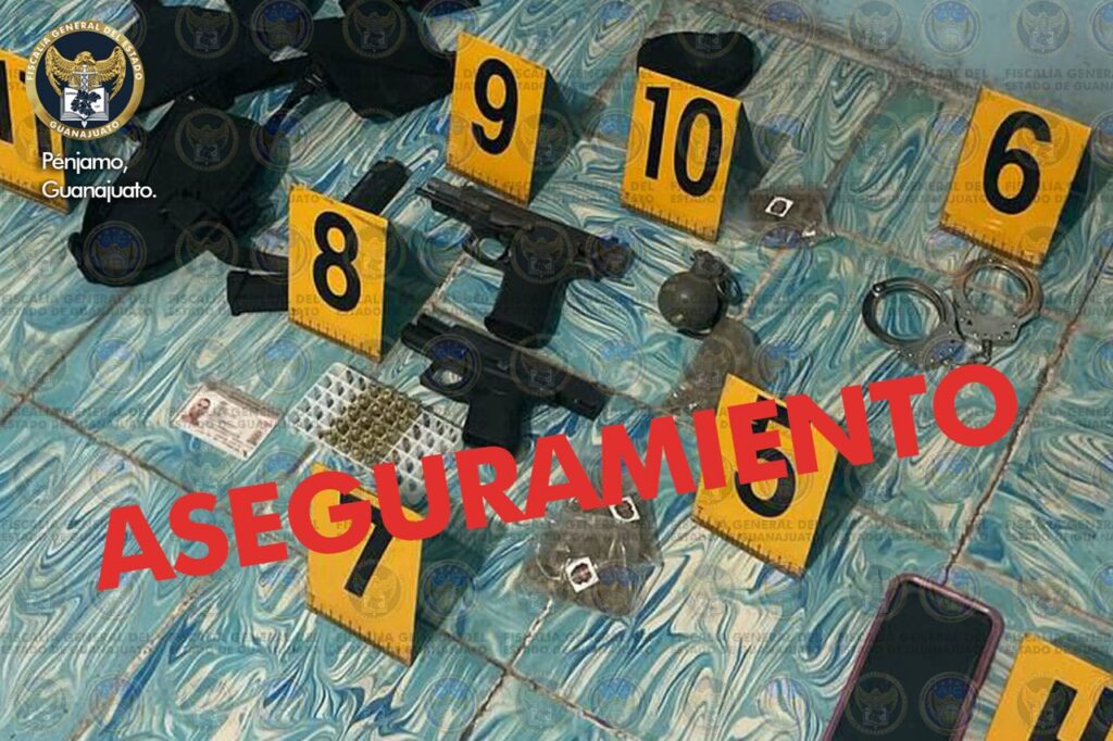 Pénjamo, Gto. La Fiscalía de Guanajuato concretó la detención de una pareja que tenían en su poder armas de fuego, cargadores, cartuchos útiles, droga, una granada y diversos objetos.