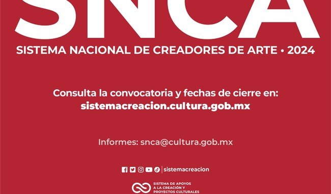 CDMX.- La Secretaría de Cultura federal, a través del Sistema Creación (antes Fonca), publica la convocatoria para el ingreso al Sistema Nacional de Creadores de Arte (SNCA) 2024.
