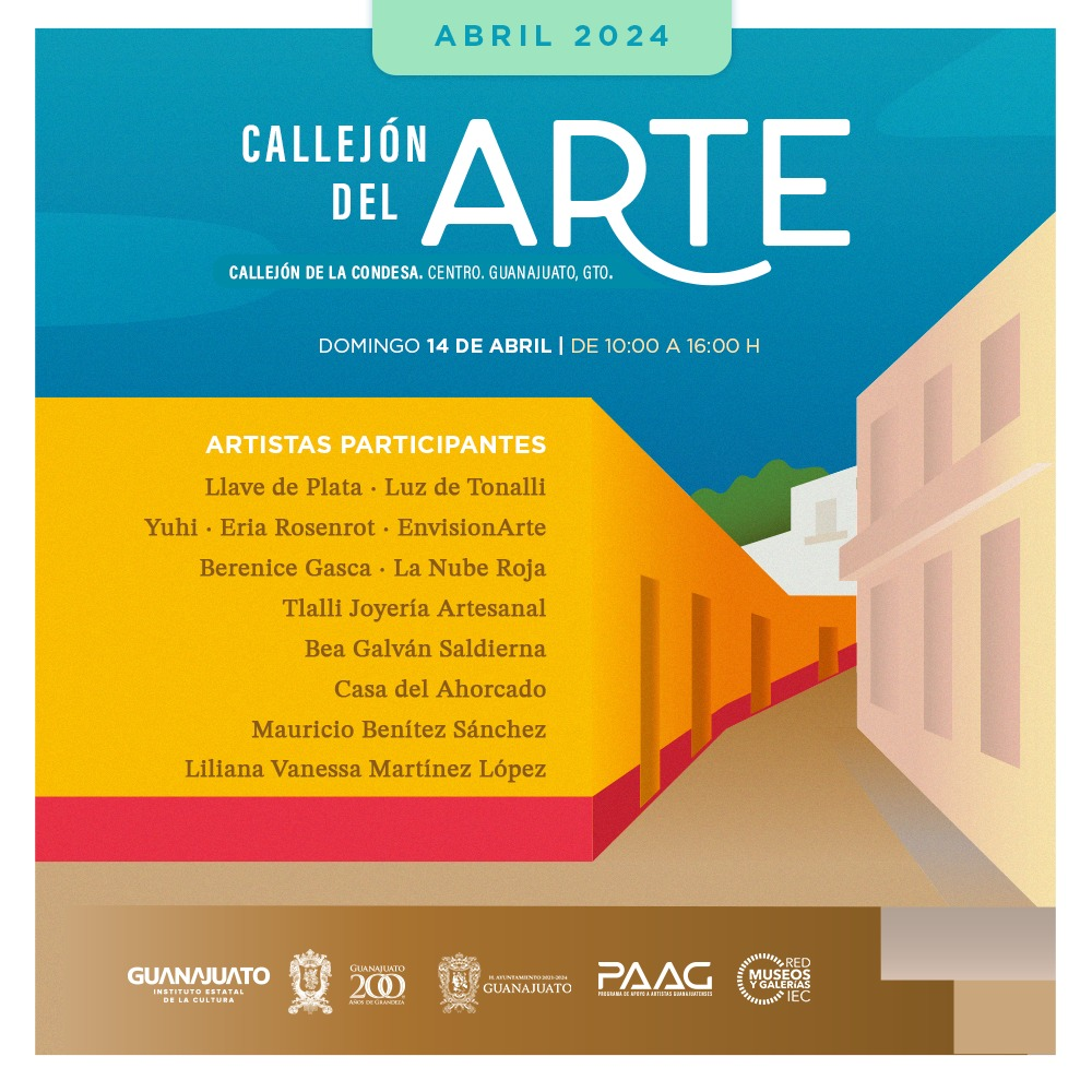 Guanajuato, Gto.- Recuerda que este domingo es de #CallejónDelArte. Ven a conocer y adquirir piezas de arte y diseño de creadores y talleres locales. Te esperamos en el Callejón de la Condesa, en Guanajuato capital, a partir de las 10:00 de la mañana.