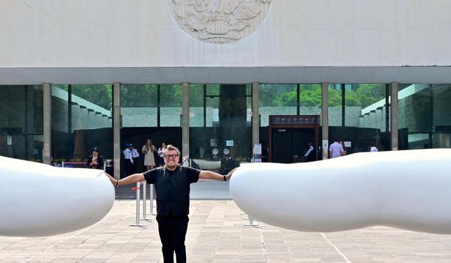 CDMX.- En el marco de la celebración de los 60 años de vida del Museo Nacional de Antropología (MNA), el artista jalisciense José Rivelino Moreno Valle (1973), presentó Tú, una de sus obras escultóricas monumentales más emblemáticas, en la explanada principal del recinto capitalino.