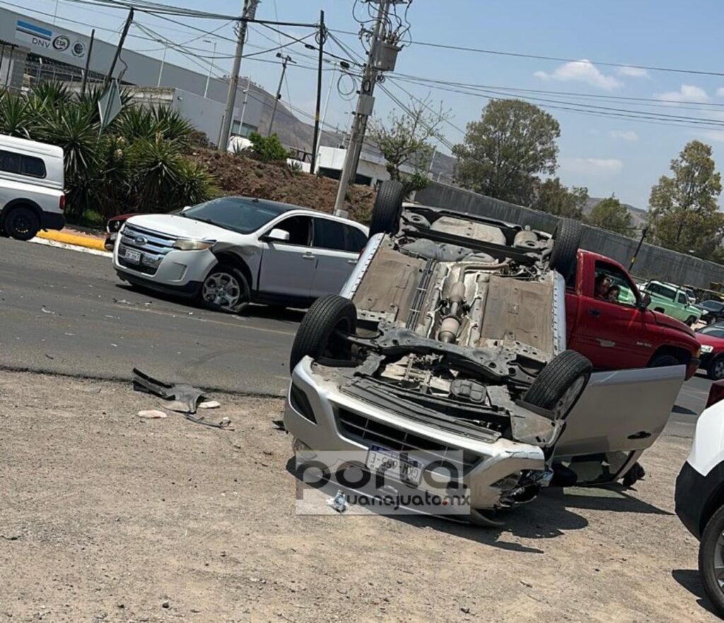 Guanajuato, Gto. Una mujer resultó herida en durante el choque entre una camioneta y el vehículo particular en que viajaba.