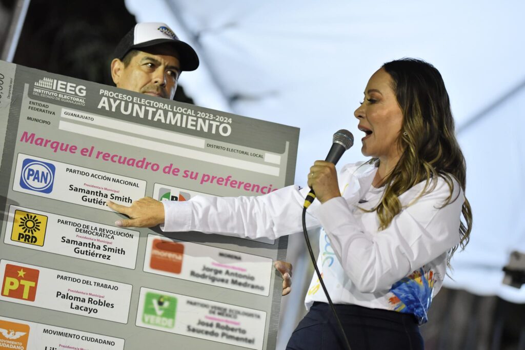 Guanajuato, Gto. La candidata de la coalición PAN, PRI y PRD por la presidencia municipal de Guanajuato, Samantha Smith Gutiérrez, sostuvo que trabajará por tener un gobierno paritario, es decir, dar la misma oportunidad a las mujeres como a los hombres en puestos de decisión.