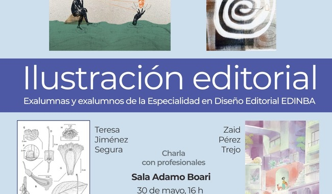 CDMX.- Xanic Galván Nieto, Salvador Jaramillo Aguilar, Teresa Jiménez Segura y Zaid Pérez Trejo, egresados y egresadas de la Escuela de Diseño (Edinba), del Instituto Nacional de Bellas Artes y Literatura (Inbal) y la Subdirección General de Educación e Investigación Artísticas (Sgeia), mostrarán el 30 de mayo de 2024 sus trabajos de Ilustración Editorial en la Sala Adamo Boari del Palacio de Bellas Artes.