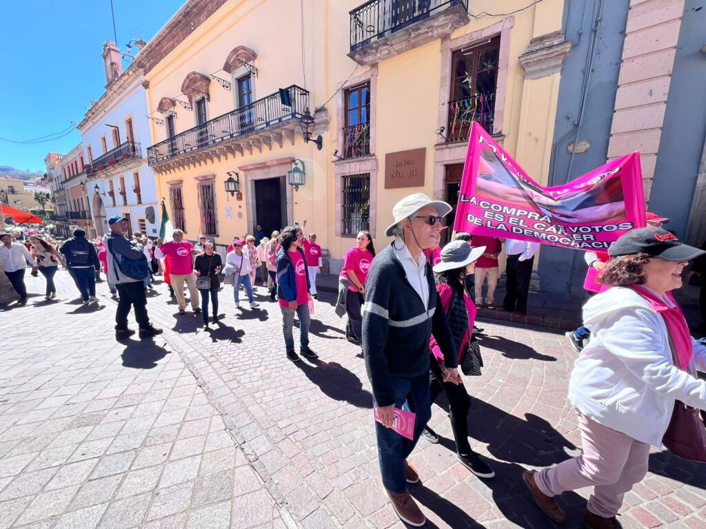 En la capital del estado el punto de partida fue Paseo de la Presa, frente a Palacio de Gobierno, de ahí caminaron hasta llegar a la Plaza de la Paz, donde estaban montadas algunas bocinas para escuchar lo que se vivía desde el zócalo de la Ciudad de México, donde estuvo presente la candidata a la presidencia de la República, Xóchitl Gálvez Ruiz.