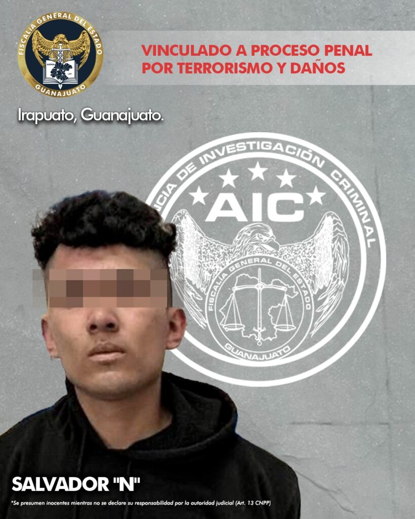 Irapuato, Gto. La Fiscalía de Guanajuato presentó elementos de prueba para que SALVADOR “N” fuera vinculado a proceso penal por los delitos de terrorismo y daños por incendio cometidos en Irapuato.