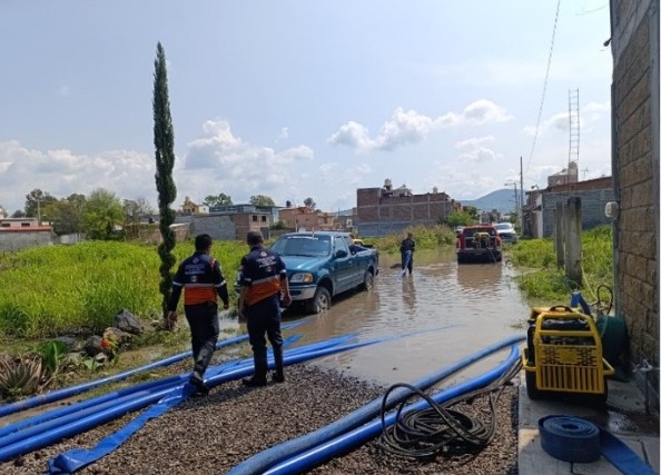 Entre las acciones de ayuda, se realizó la extracción de agua en la zona de inundación utilizando bombas neumáticas para desalojar el líquido de tres vialidades que se encontraban encharcadas, además, en colaboración con la Comisión Nacional del Agua, se iniciaron las labores de evaluación de daños en la infraestructura urbana.
