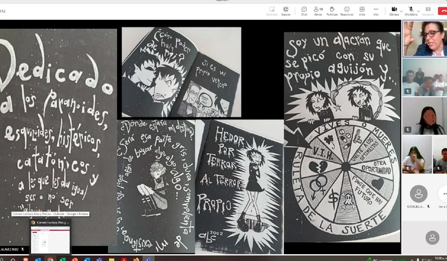De este modo, la imaginación e introspección, el diálogo y la inventiva resultaron indispensables en el desarrollo de las actividades que este Punto de lectura en línea propuso para su primera etapa de operaciones que incluyó la elaboración de fanzines, mapas de vida, juegos literarios y creación de personajes, en compañía de la promotora de lectura Carola Diez.