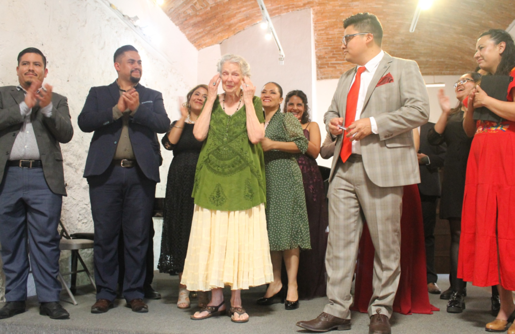 Así, fue reconocido el trabajo de la mujer estadounidense que, sin fines de lucro, ha contribuido al desarrollo social de los guanajuatenses. El homenaje fue sencillo, sin la participación de las instancias culturales, fue la propia sociedad a quien ha servido, la que se unió para homenajearla. Llegaron cantantes que ya trabajan en otras partes de la república, en Estados Unidos y en Francia, para decirle: “eres nuestra protectora, nuestra guía”.