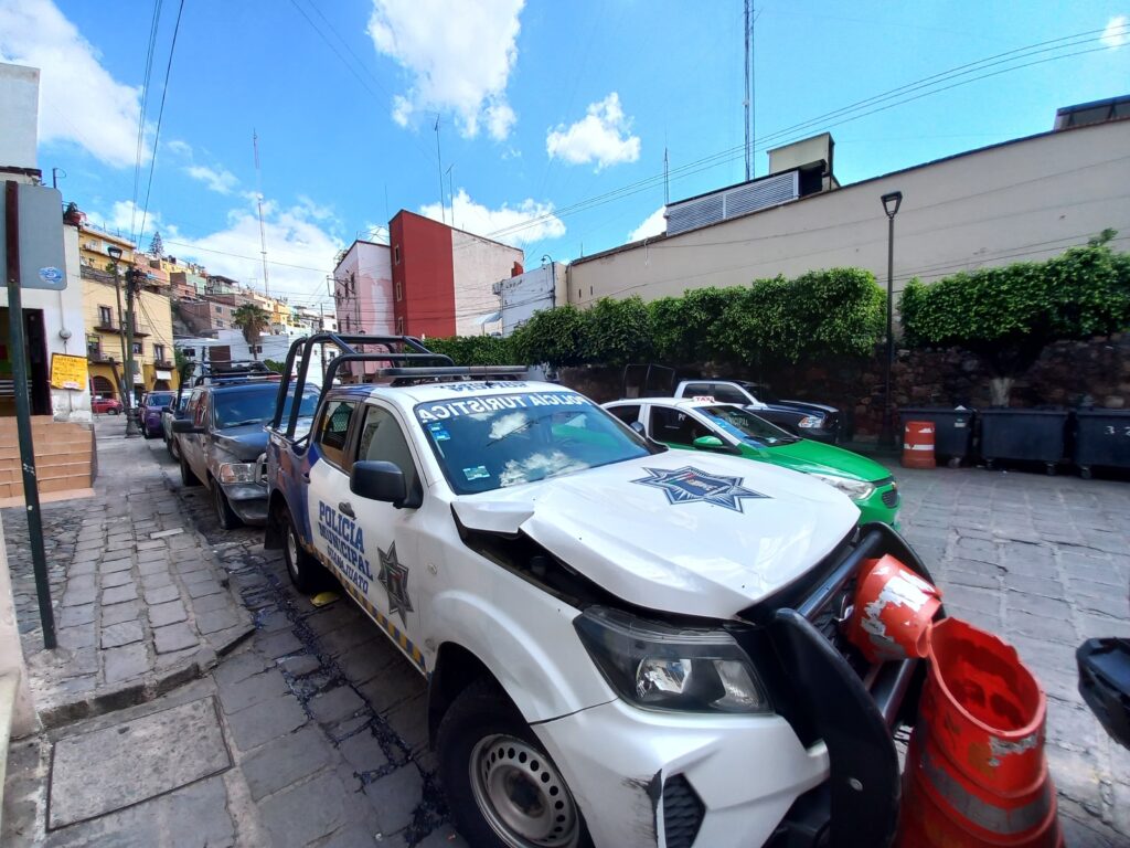 Guanajuato, Gto. Un oficial de la policía capitalina, al hacer maniobras para estacionarse sin precaución, causó danos a tres patrullas de la policía municipal de Guanajuato, frente a la Comisaría municipal, reconoció el secretario de Seguridad Ciudadana, Samuel Ugalde García.