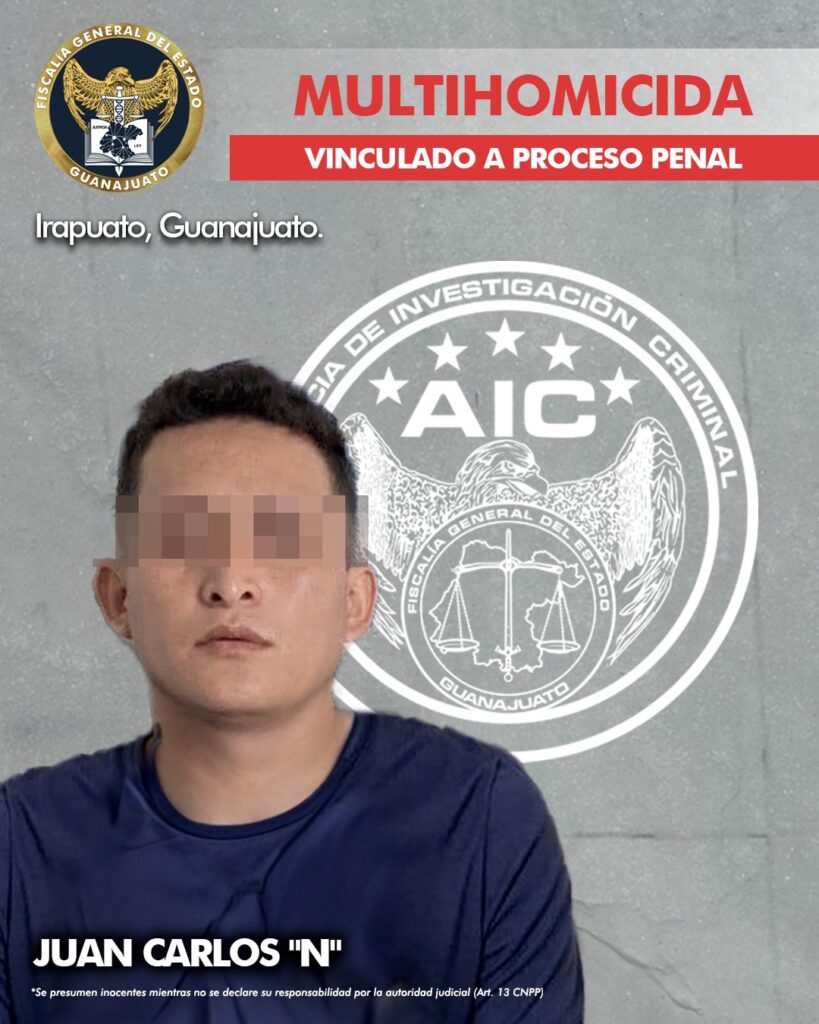 Irapuato, Gto. La Fiscalía de Guanajuato logró la vinculación a proceso penal del presunto multihomicida que disparó y privó de la vida a cuatro personas en un baldío de la colonia Santa María en la ciudad de Irapuato, el 11 de octubre de 2021.