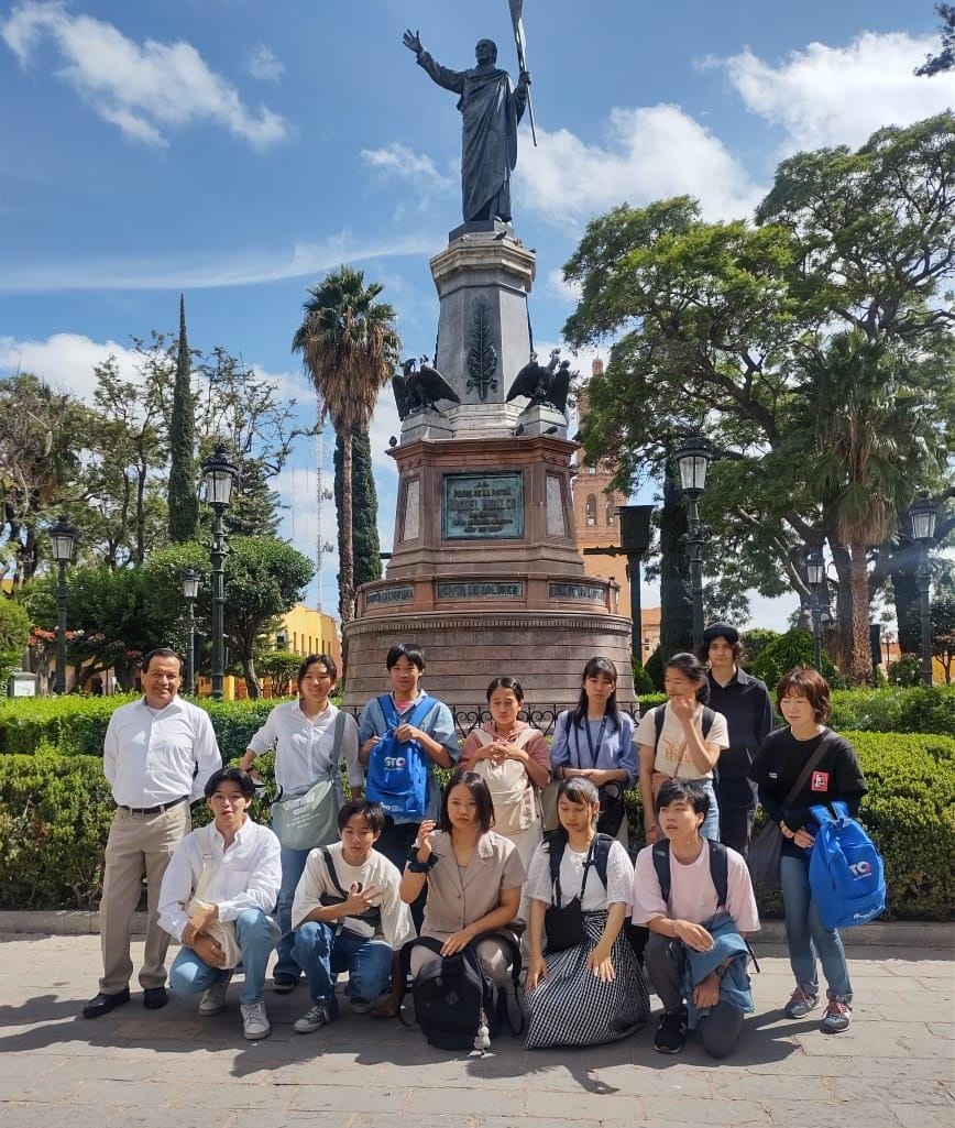 La visita al municipio de Dolores Hidalgo incluyó un recorrido por los sitios históricos más emblemáticos del municipio, comenzando con el Museo Independencia y el Museo Bicentenario, ubicados en el centro histórico de la ciudad. Aquí, las y los visitantes japoneses, acompañados por Raúl Martínez Cortes, director de Educación en Dolores Hidalgo, exploraron objetos y documentos que narran la historia del movimiento independentista mexicano. Cada estudiante quedó impresionado al observar piezas originales y arte popular que capturan la esencia de aquella época decisiva para México.