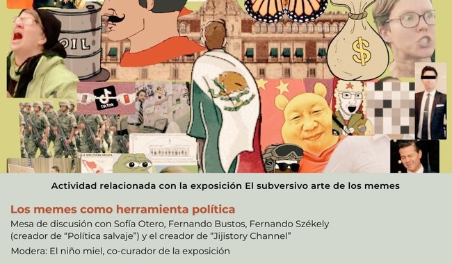 La exposición El subversivo arte de los memes explora el concepto de meme como medio para la difusión estética de información sobre temas de interés público, mediante el humor crítico y la sátira política. Los memes juegan un papel significativo en la configuración de imaginarios colectivos, con el fin de que el público pueda reflexionar sobre la comunicación estética en la era digital.