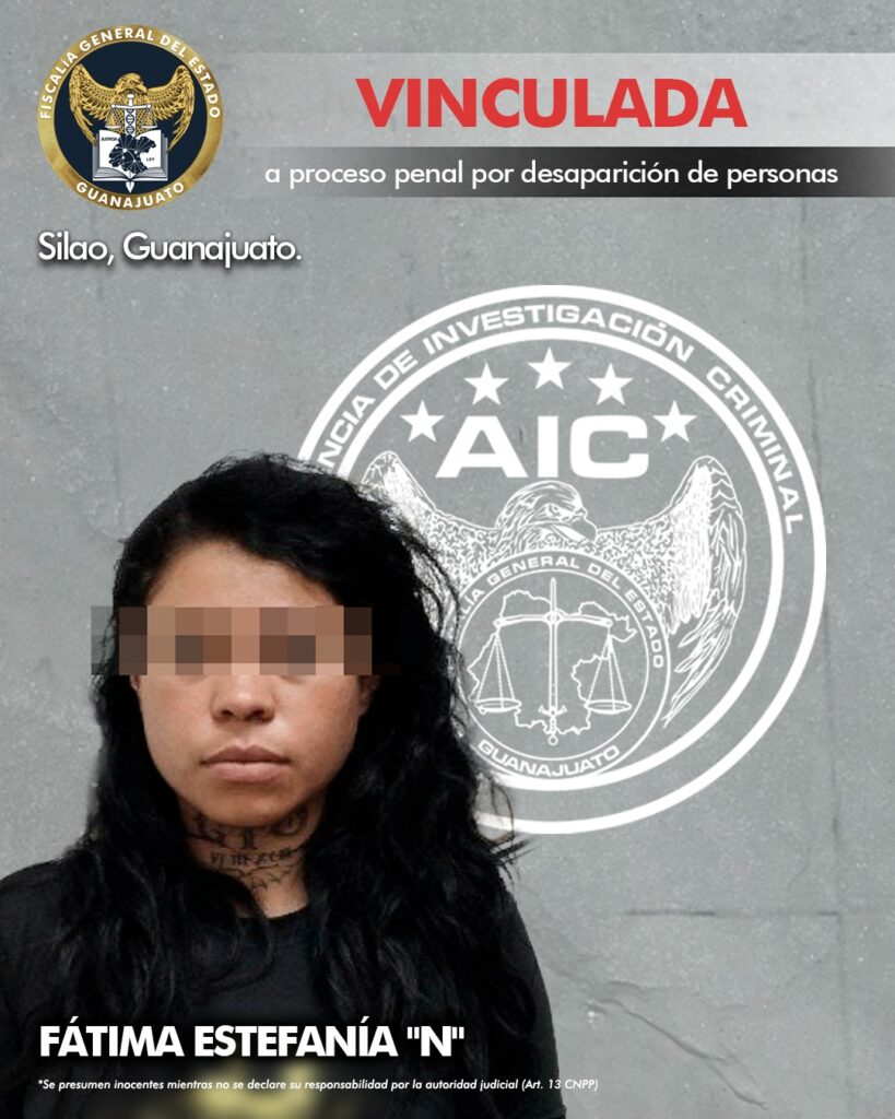 Silao, Gto. Una investigación por el delito de desaparición cometida por particulares, condujo a la Unidad Especializada en Investigación de Personas Desaparecidas a la captura de FÁTIMA ESTEFANÍA “N”. Esta mujer participó en la desaparición de un joven de 26 años, el 23 de julio de 2024, en Silao.