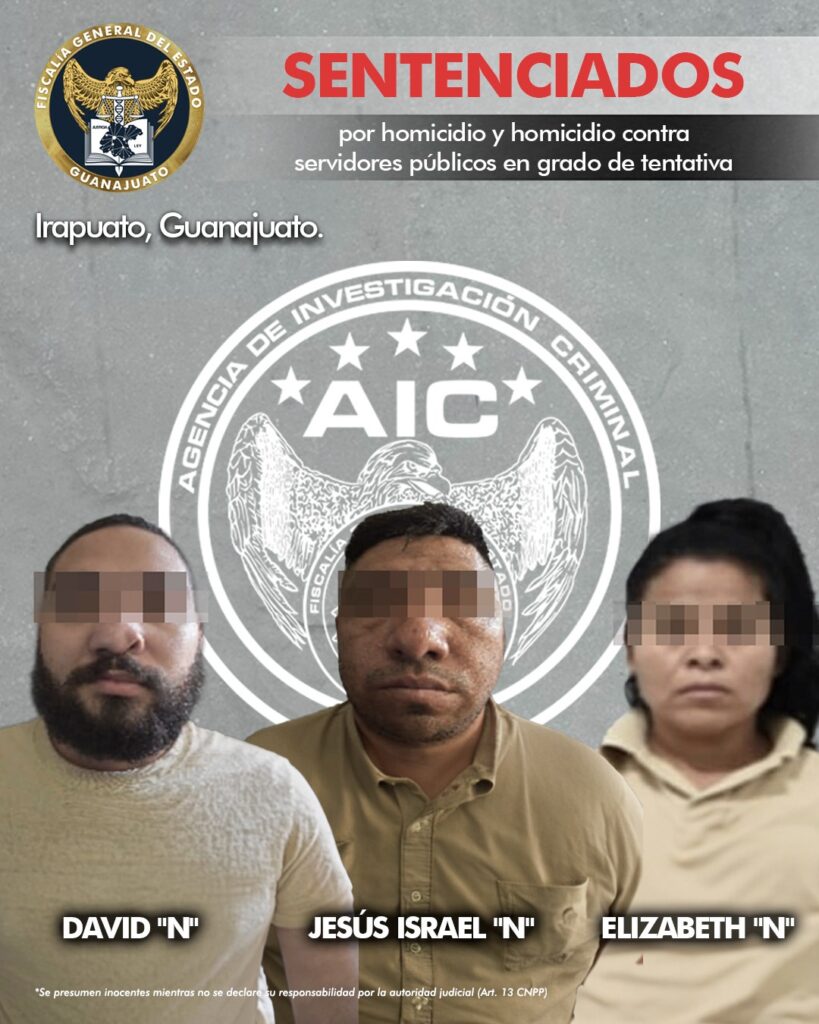 Durante las investigaciones, la Fiscalía de Guanajuato obtuvo diversos elementos de prueba de tipo pericial y con sustento jurídico, cuyo valor probatorio permitió que fueran vinculados a proceso penal y una vez que se llegó la etapa del juicio oral, el Juez dictó una sentencia de 8 años de cárcel por el homicidio de Juan Pablo y 40 años más por el intento de homicidio de 5 elementos de Seguridad Pública, lo que suma un total de 48 años tras las rejas.