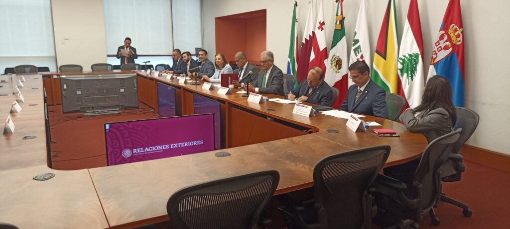 Como invitados especiales estuvieron el Excmo. Embajador del Líbano en México, Sr. Sami Nmeir; la Excma. Embajadora de Serbia en México, Sra. Tatjana Conić; el Sr. Nikoloz Sakhvadze, Ministro Consejero de la Embajada de Georgia en México; el Mtro. Edgar Rebollar Sáenz, Director de Vinculación Internacional IMR y la Mtra. Marlen Vargas Mendoza, Analista de Vinculación del IMR.