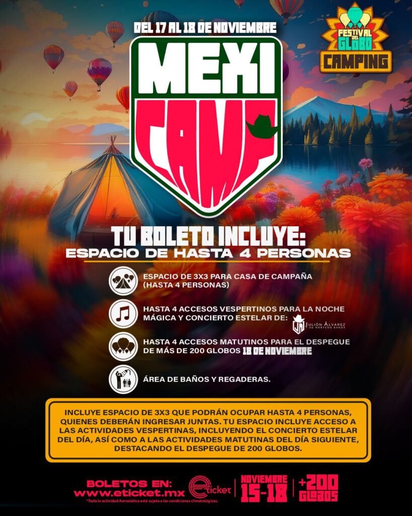 • El Mexicamp, que incluye el concierto de Julión Álvarez y despegue +200 globos aerostáticos al día siguiente.