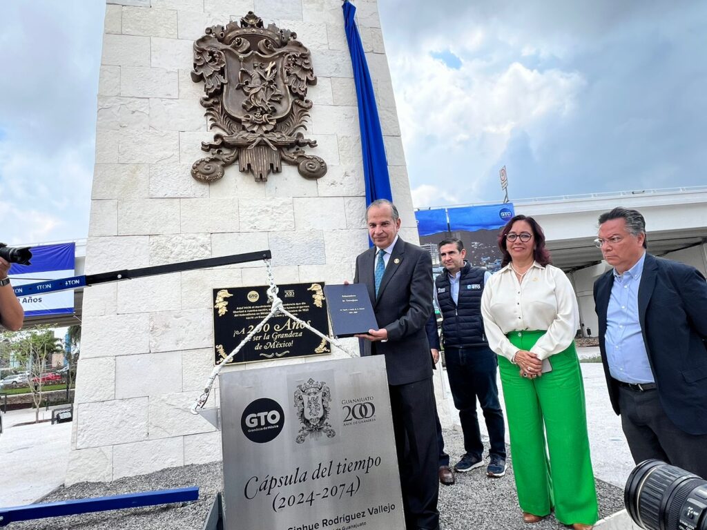 Además se colocó una cápsula del tiempo a los pies del monumento de la glorieta, el cual contiene la bandera del estado de Guanajuato, el libro de gobernadores, el documento de la primera interpretación del Himno del Estado, videos que contienen el manifiesto a los 200 años, y memorias fotográficas de eventos representativos.