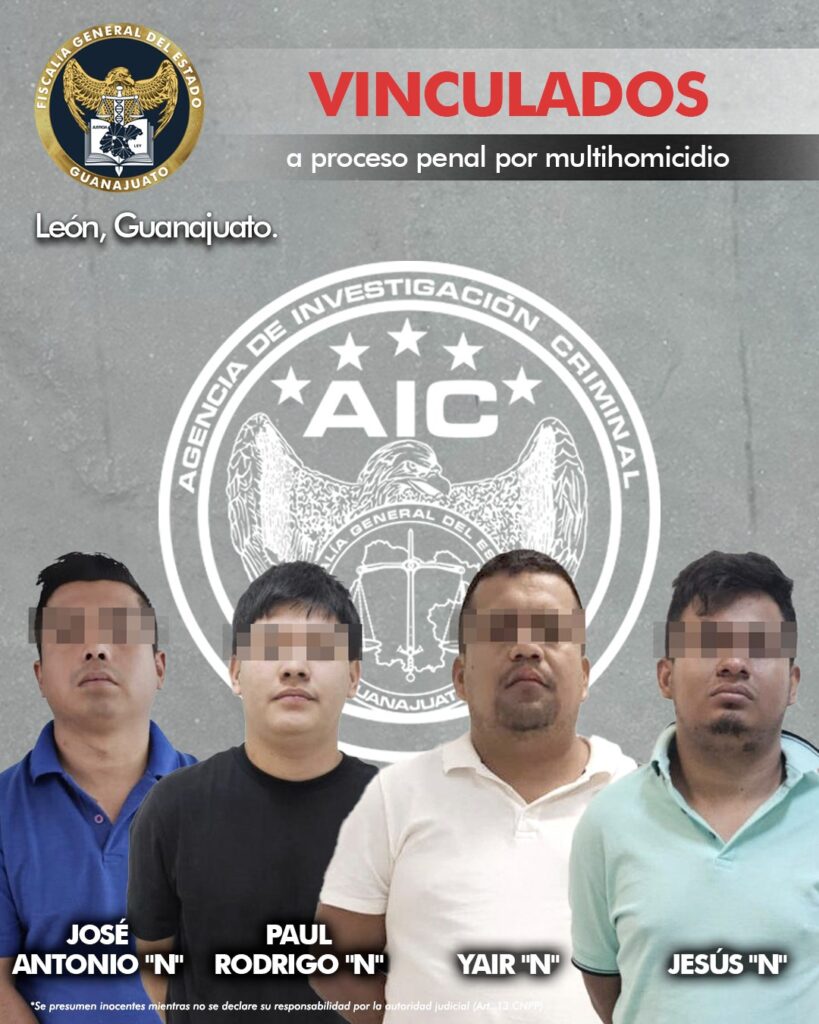 León, Gto. La Fiscalía de Guanajuato logró que cuatro sujetos que integraban una célula criminal fueran vinculados a proceso penal por el multihomicidio registrado en la colonia Villas de San Nicolás II, el 29 de septiembre de 2024, en la ciudad de León.