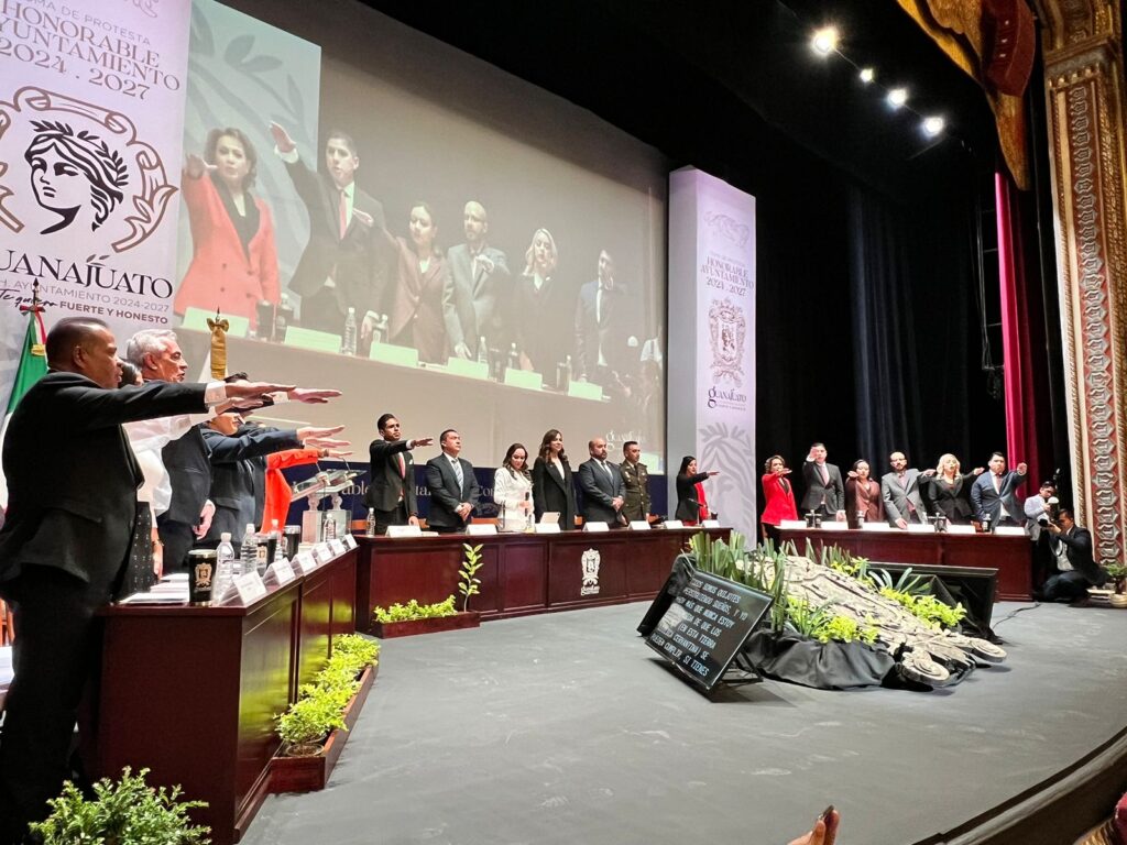 Guanajuato, Gto. Con el compromiso de comenzar una nueva etapa para la capital del estado, la alcaldesa Samantha Smith Gutiérrez, tomó protesta al cargo al igual que el resto del ayuntamiento de Guanajuato, en una sesión solemne que se desarrolló en el teatro Juárez, en punto del primer minuto, de este 10 de octubre,