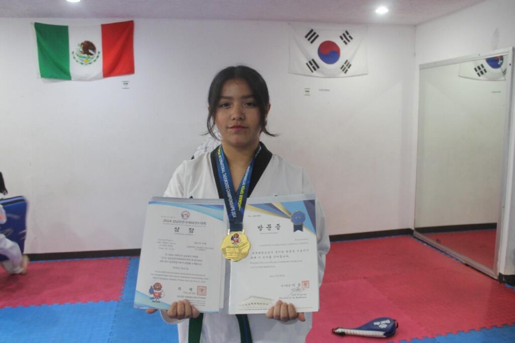 Guanajuato, Gto.- Aunque cayó por casualidad en la práctica del taekwondo, ahora la joven guanajuatense Valeria Baltazar Villanueva tuvo la oportunidad de mostrar sus aptitudes en esa disciplina en Corea, donde conquistó medalla en el Seongnam Open y tuvo otros logros destacados.
