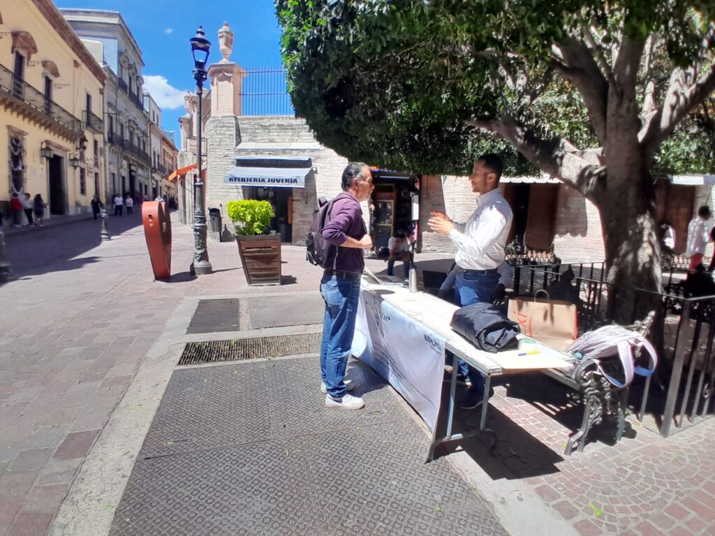 Guanajuato, Gto. Como parte del proceso de participación ciudadana que el Gobierno Municipal de Guanajuato promueve para revisar y retroalimentar el Programa Municipal de Desarrollo Urbano y Ordenamiento Ecológico Territorial (PMDUOET), se instaló una mesa de orientación y recepción de opiniones en la plaza del Truco, frente a la Presidencia Municipal.