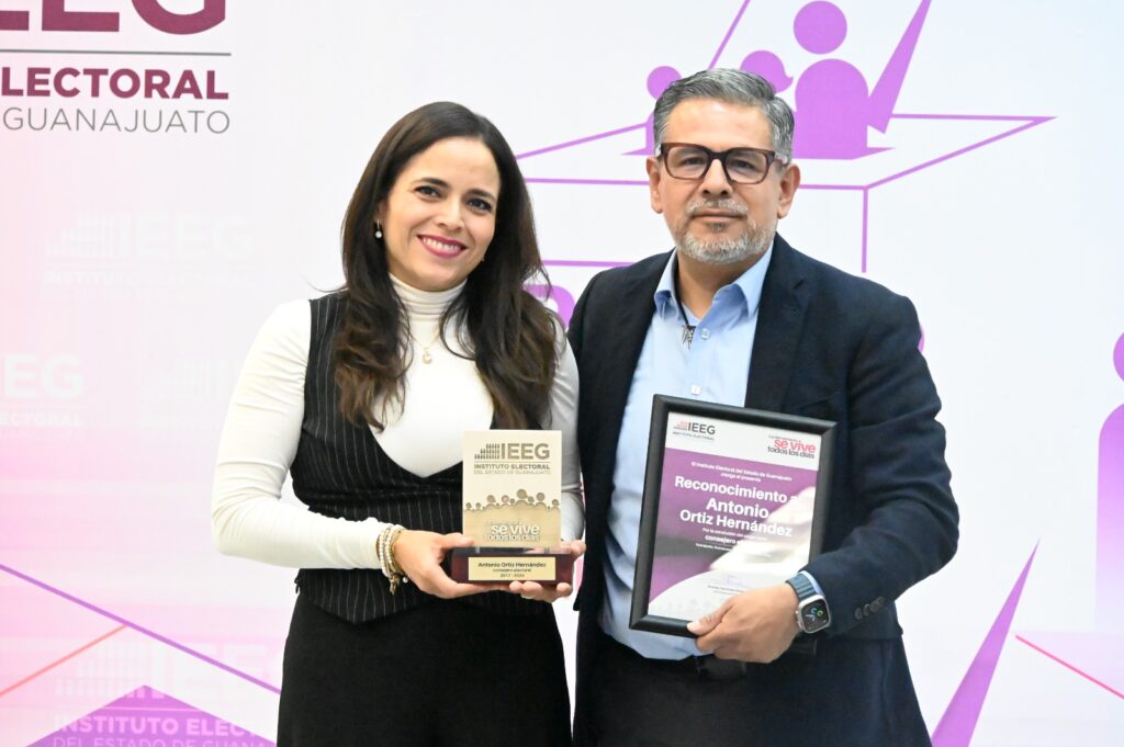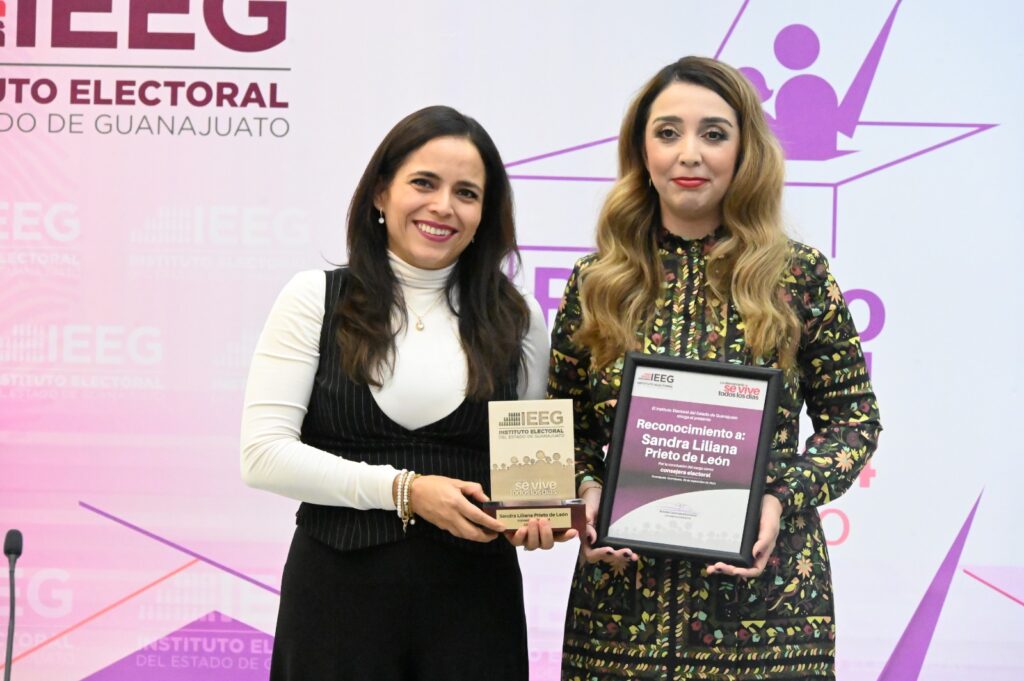 Guanajuato, Gto. El Consejo General del Instituto Electoral del Estado de Guanajuato, entregó reconocimientos a Beatriz Tovar Guerrero, Sandra Liliana Prieto de León y a Antonio Ortiz Hernández, por el término de su cargo como consejeros electorales.