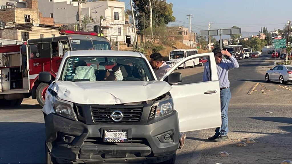 Guanajuato, Gto. Tres personas resultaron con heridas leves durante el choque entre dos camionetas en el entronque de Santa Teresa, sobre la carretera libre Guanajuato- Silao. Uno de los conductores involucrados en el percance, es empleado del Gobierno del Estado.