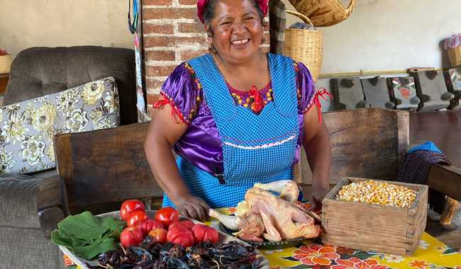 “Es una bonita tradición de mi municipio. El mole no se come con cuchara ni nada de eso, simplemente se sirve en un cajete acompañado de un pedazo de carne de puerco y un tamal de anís y así se va sorbiendo el mole”.